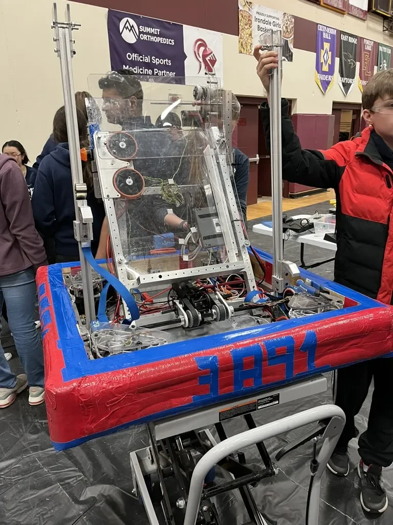 This year we did something new. Instead of just having 3630 Stampede, we also created a sister team, 3891 Rodeo Robotics. Stampede became specifically for students in grades 10-12, while Rodeo is for students in grades 7-9. In doing so, we ensured that students in every grade level have the opportunity to participate in some form of robotics at our school. Additionally, this development allows our younger students to gain leadership skills earlier in their robotics careers. Even though we technically have two teams, we think of ourselves as one team with two robots.